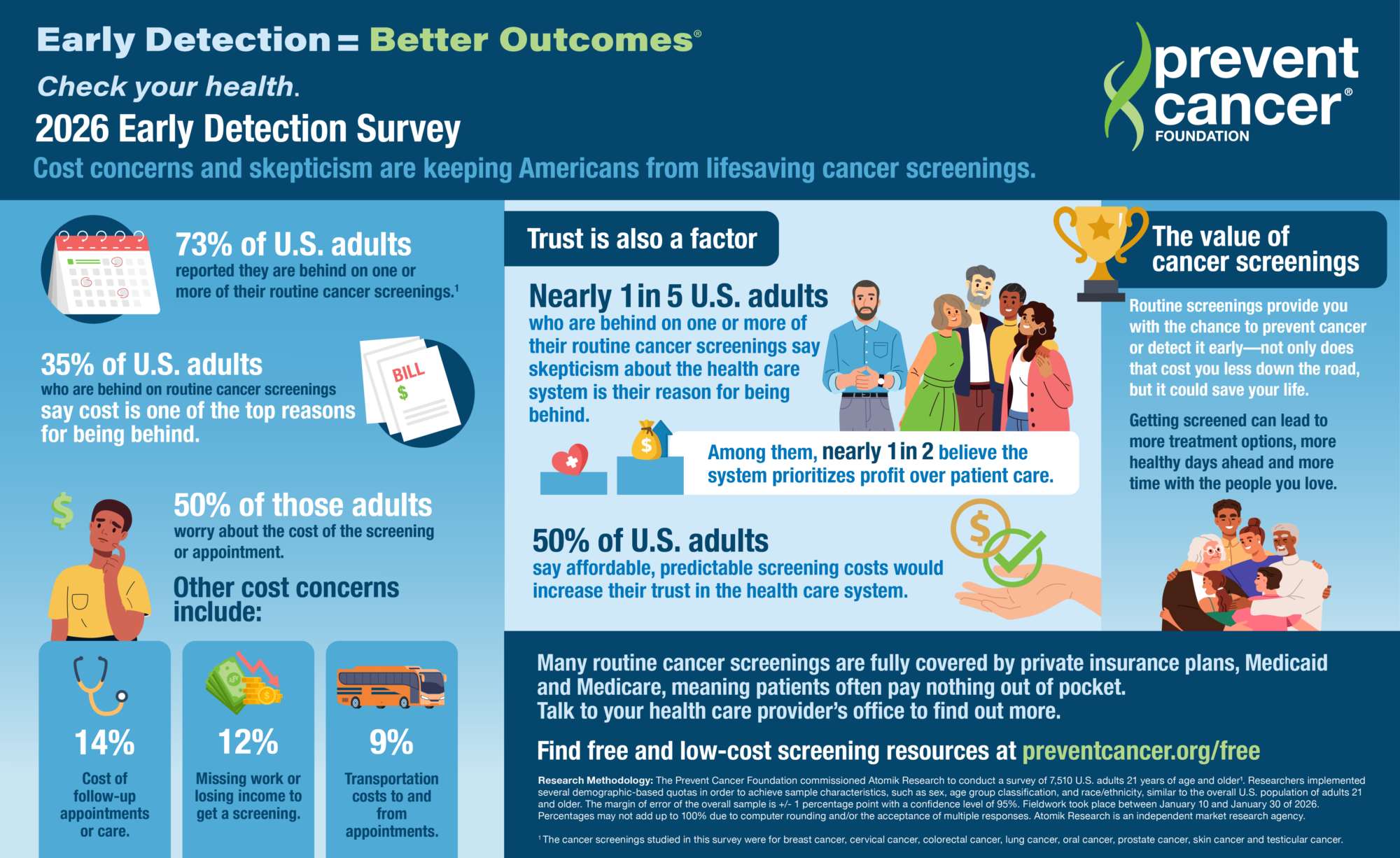 You can find information and resources on all cancer types studied in the 2026 Early Detection Survey, including information on relevant screenings, at preventcancer.org/betteroutcomes.